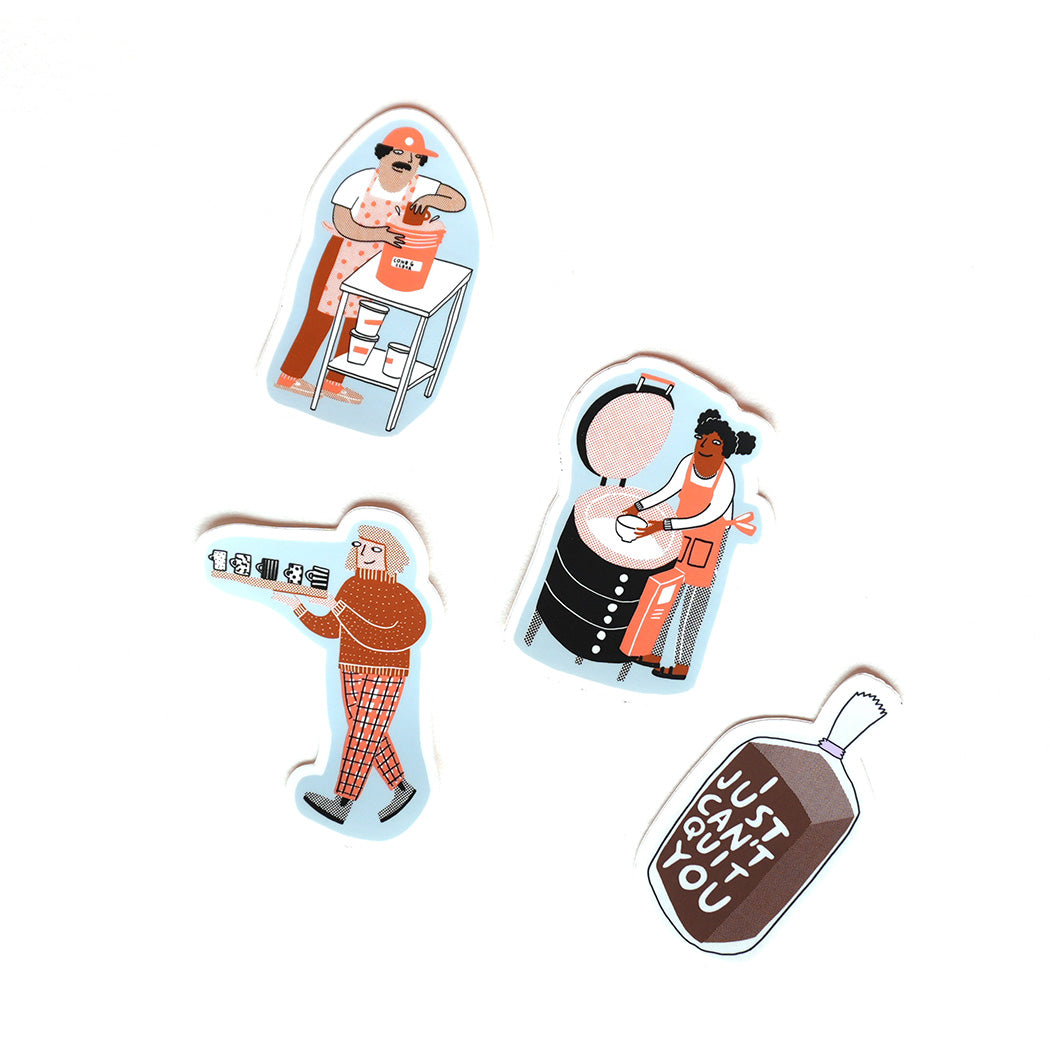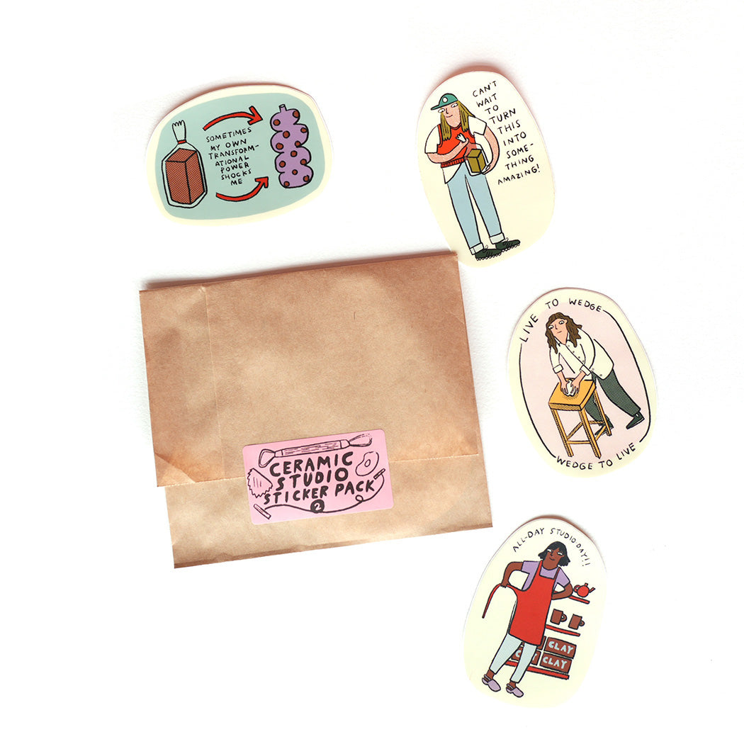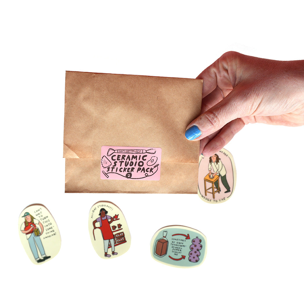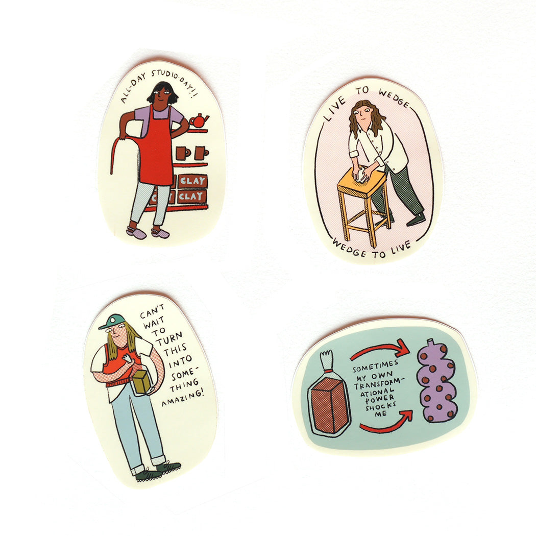 I wanted to make a tee shirt that celebrated the magic factor in clay - the transformation that happens when you get it really, really hot. After however many years of working in clay, I’m still not over that magic! Featuring drawings of different kinds of kilns, shelves, posts, kiln wash, and more, this shirt invites people to ask you about magical transformations! Black screenprint on a natural colored tee shirt.