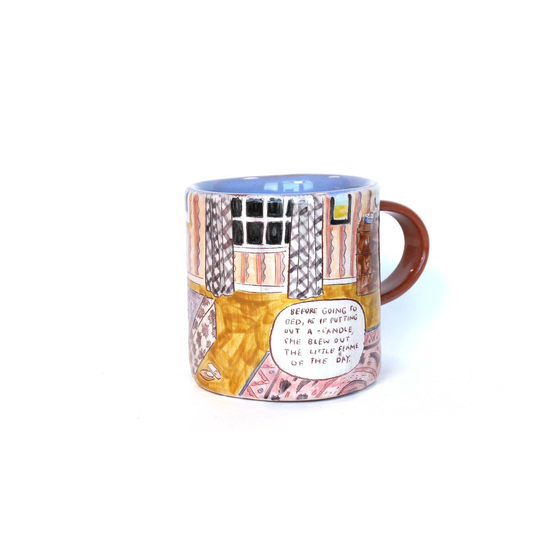 From a Clarice Lispector story: "Before going to bed, as if putting out a candle, she blew out the little flame of the day."