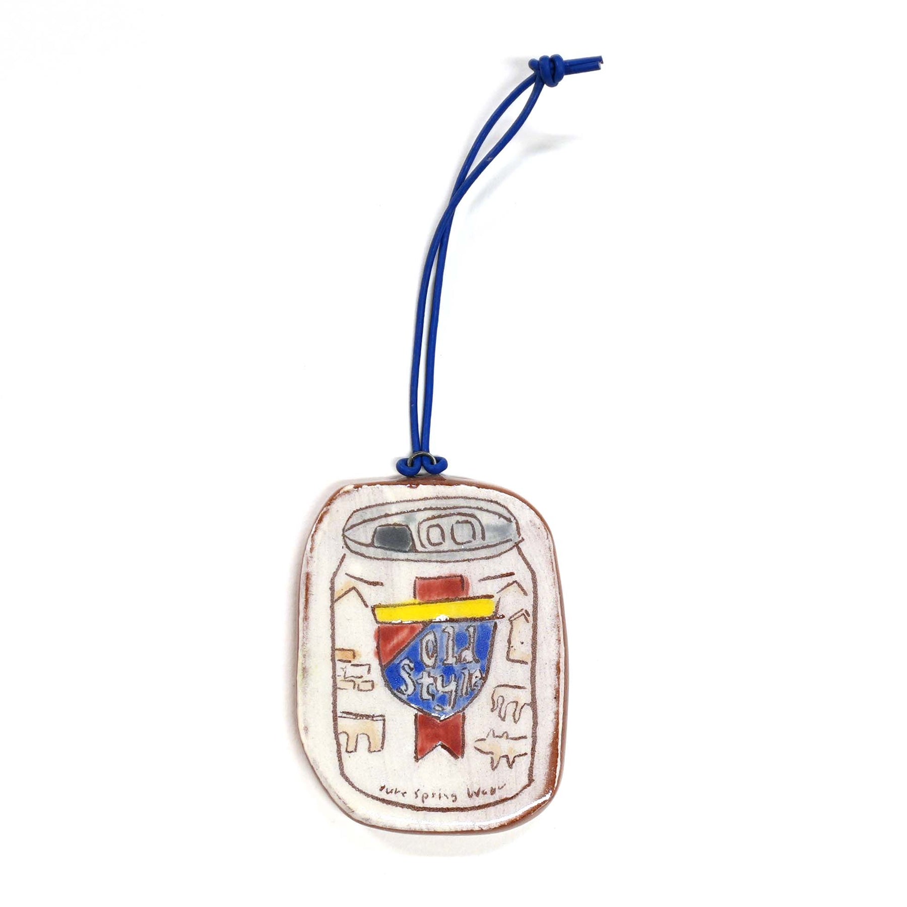 A can of Old Style, and a little wisconsin beer mug pour on the reverse.