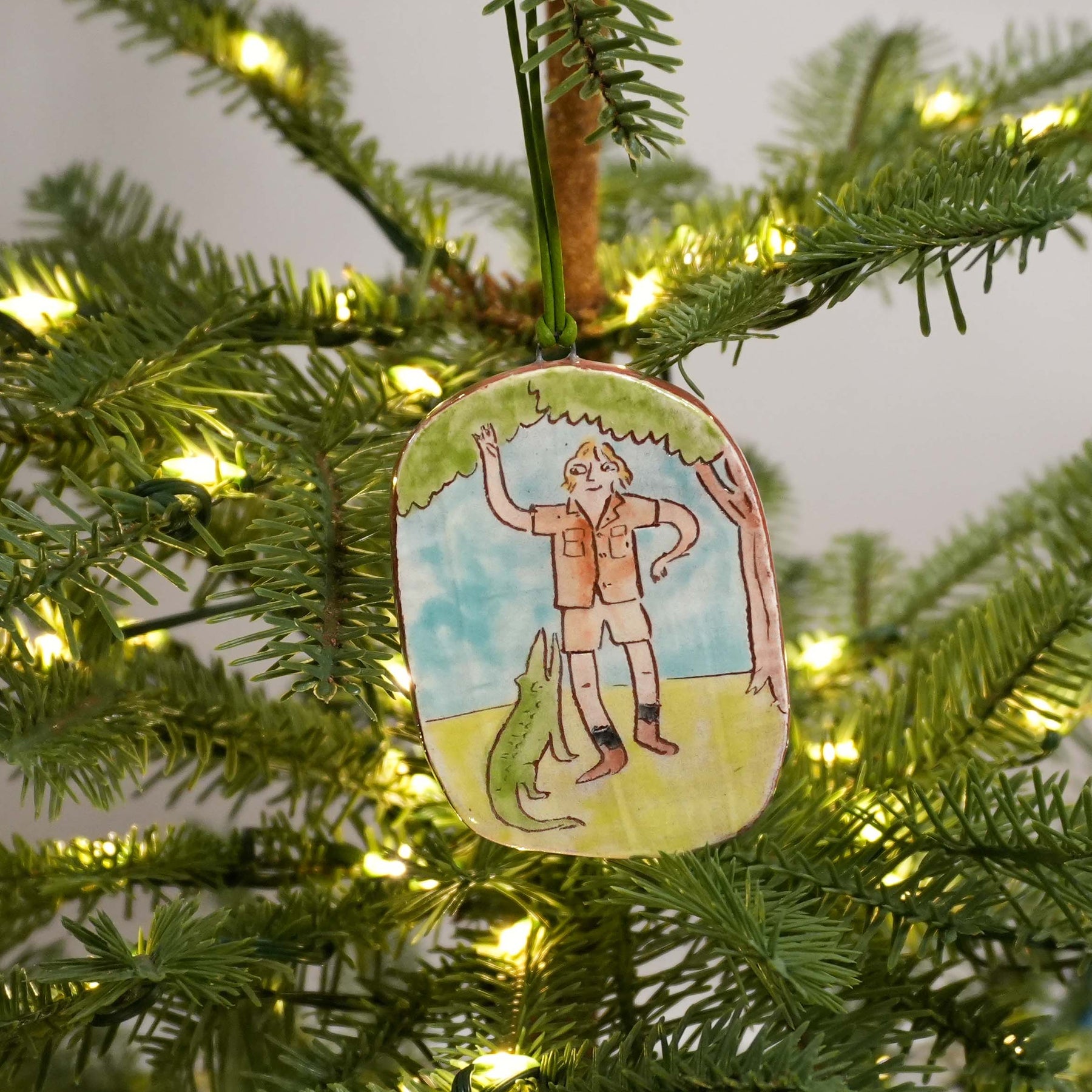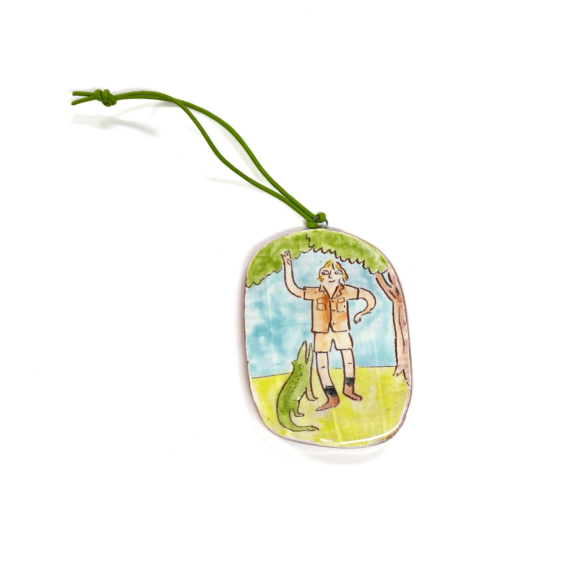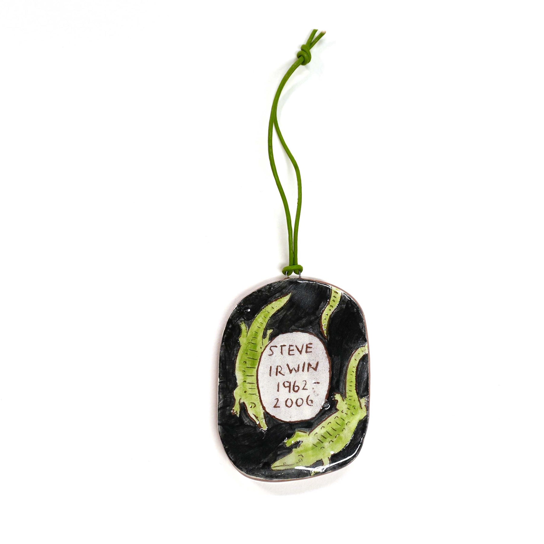 Australia's Greatest National Treasure - Steve Irwin wrangles a crocodile on one side of this future family heirloom. On the reverse, a pattern of crocodiles and a little in memorandum. Gone too soon, for sure!
